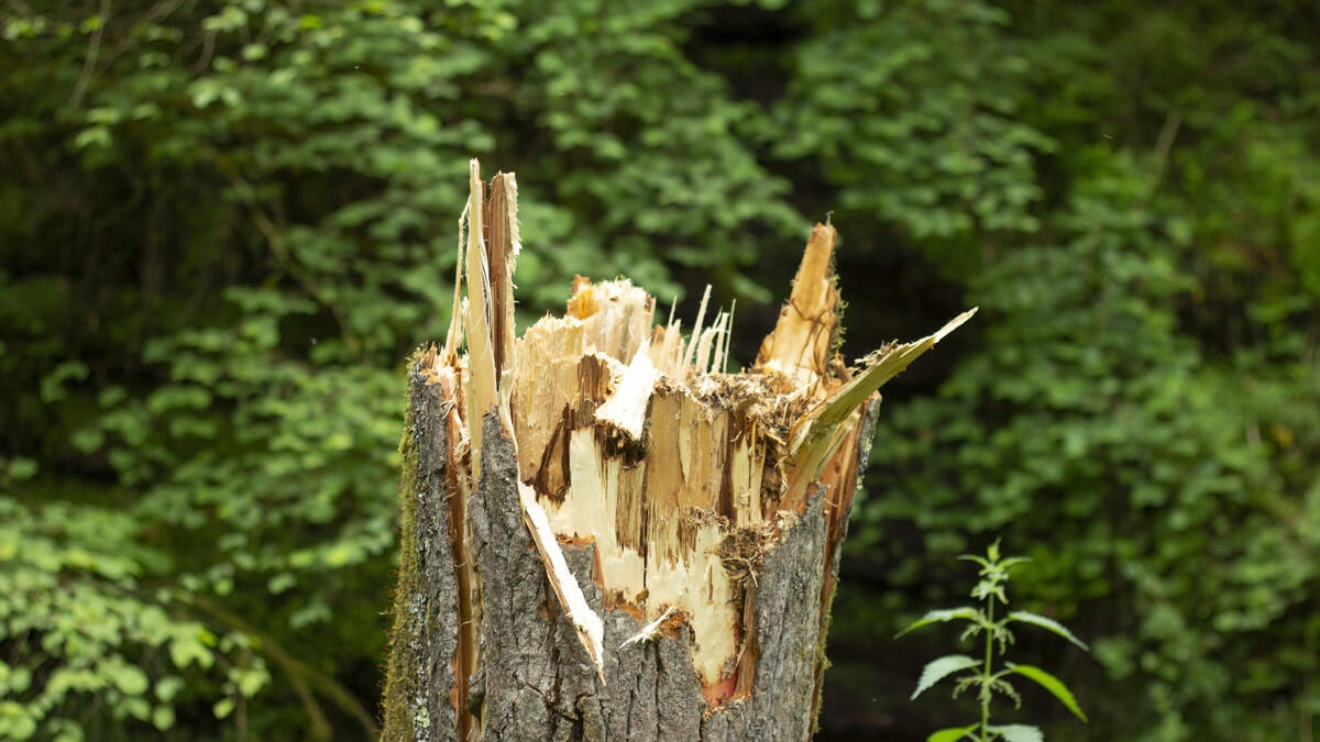 The fallen tree injured the woman's leg. Her injuries aren't considered life-threatening.