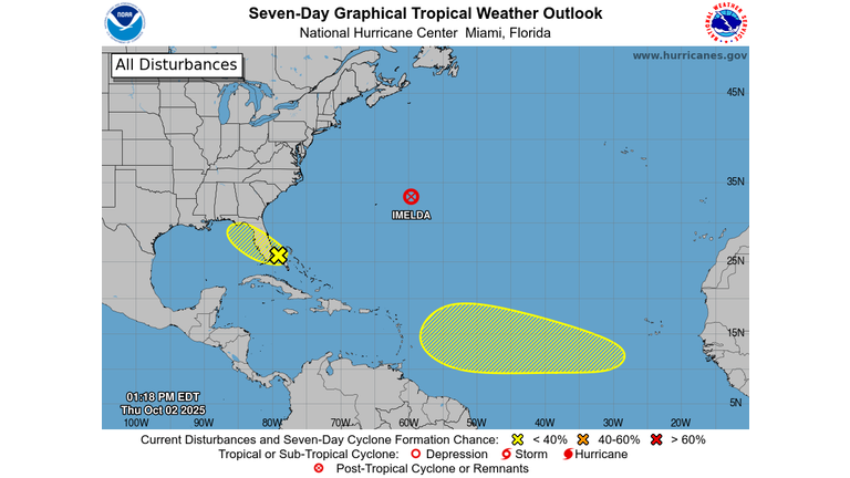 An area of low pressure may form along a remnant frontal boundary near the northwestern Bahamas and southern Florida during the next day or two. Any additional development is expected to be slow to occur as the system moves northwestward across the Florida Peninsula and into the Gulf of America.