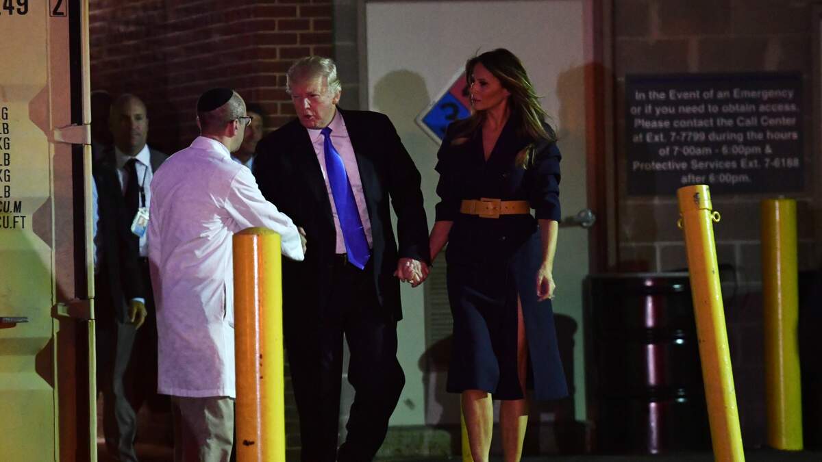 President Trump and his wife Melania visited with Congressman Steve Scalise Wednesday night at MedStar Washington Hospital Center in Washington, DC. The First Couple were seen bringing two bouquets to the facility and stayed there for about a half-hour.