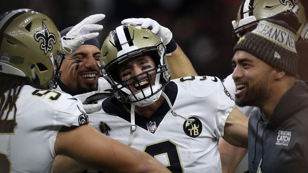 Moments after that touchdown, the NFL halted the game for about three minutes so the ball could be handed over to Pro Football Hall of Fame officials. Brees was able to embrace his family and coach Sean Payton on the sideline.