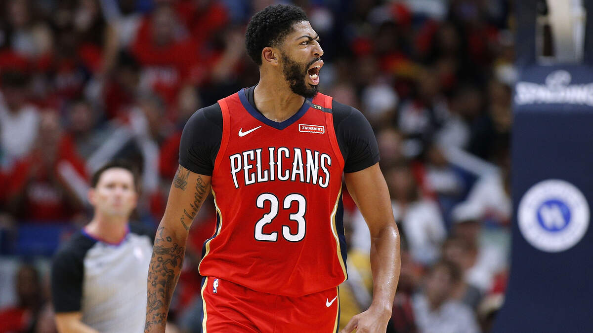 Anthony Davis #23 of the New Orleans Pelicans reacts during the first half against the Sacramento Kings at the Smoothie King Center on October 19, 2018 in New Orleans, Louisiana. (Photo by Jonathan Bachman/Getty Images)