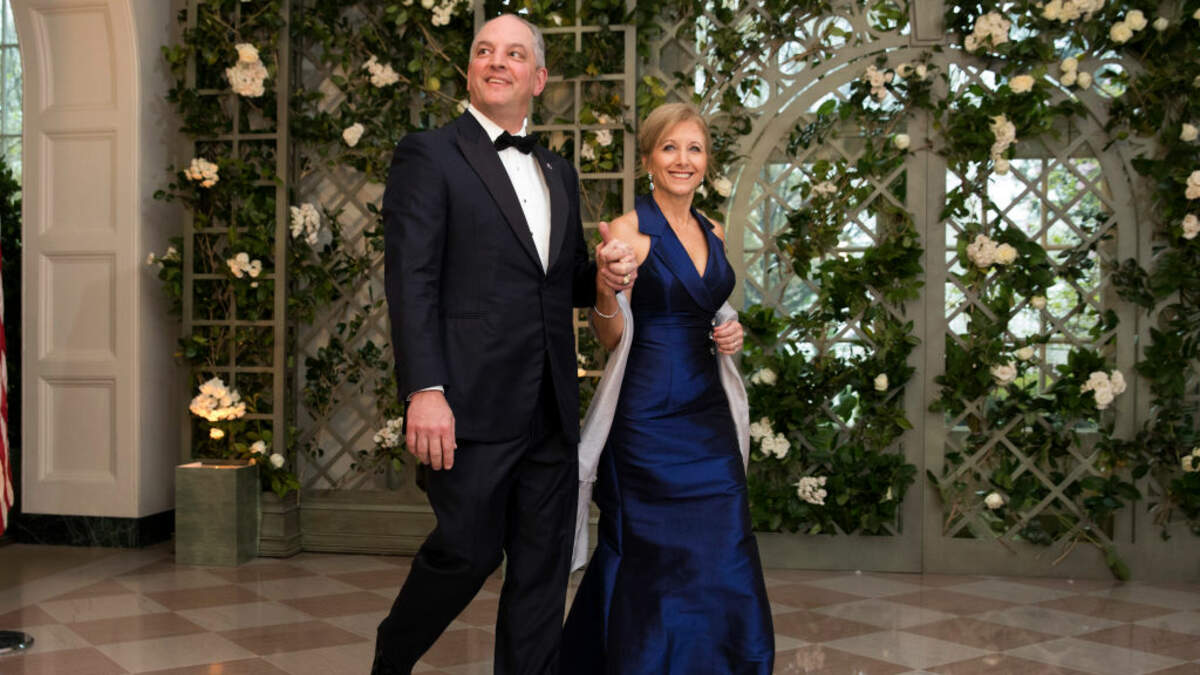 Louisiana Gov. John Bel Edwards and his wife Donna arrive at the White House for a state dinner April 24, 2018 in Washington, DC. (Photo by Aaron P. Bernstein/Getty Images)