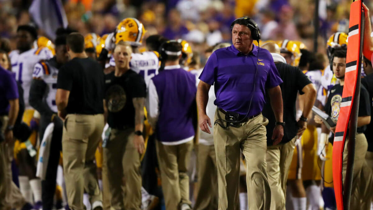 Head coach Ed Orgeron of the LSU Tigers looks on in the first half against the Alabama Crimson Tide of their game at Tiger Stadium on November 03, 2018 in Baton Rouge, Louisiana. (Photo by Gregory Shamus/Getty Images)