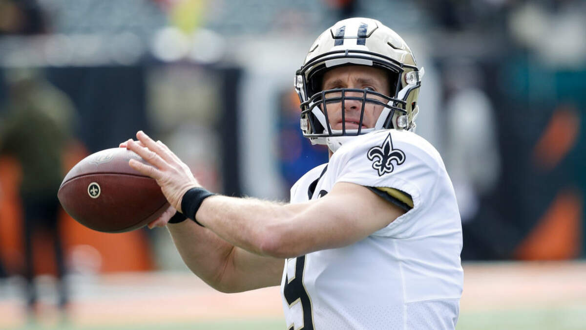 Drew Brees #9 of the New Orleans Saints warms up prior to the start of the game against the Cincinnati Bengals at Paul Brown Stadium on November 11, 2018 in Cincinnati, Ohio. (Photo by Joe Robbins/Getty Images)