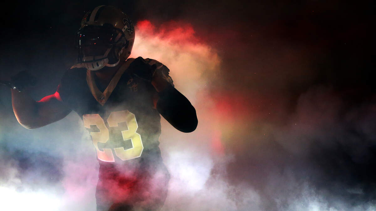 Marshon Lattimore #23 of the New Orleans Saints takes to the field before a game against the Atlanta Falcons at the Mercedes-Benz Superdome on November 22, 2018 in New Orleans, Louisiana. (Photo by Sean Gardner/Getty Images)