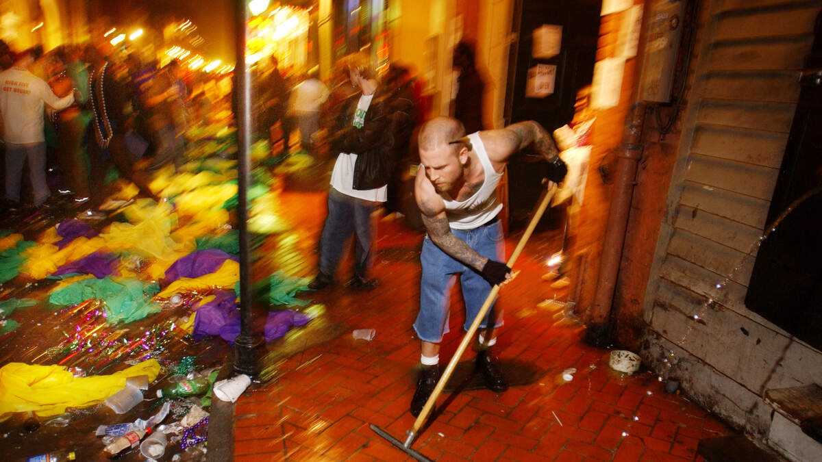 There's probably an easier and cleaner way to make a buck, but someone has to clean up after Mardi Gras revelers in New Orleans.