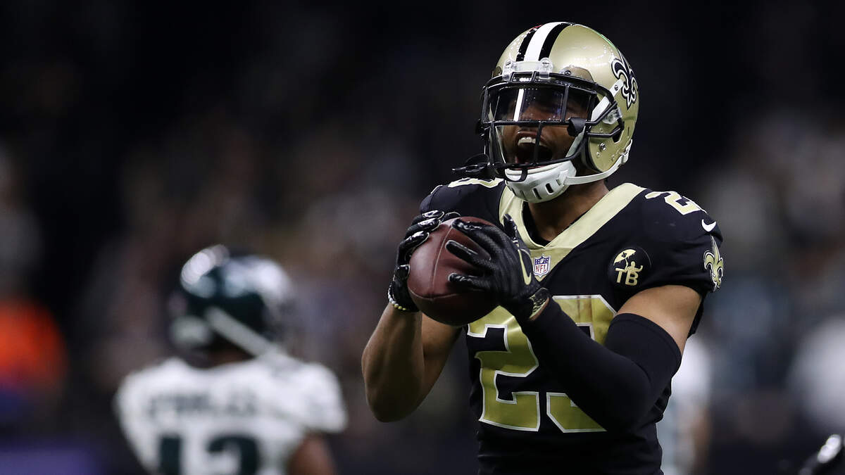 Marshon Lattimore #23 of the New Orleans Saints reacts after a bocked pass during the NFC Divisional Playoff at the Mercedes Benz Superdome on January 13, 2019 in New Orleans, Louisiana. (Photo by Chris Graythen/Getty Images)
