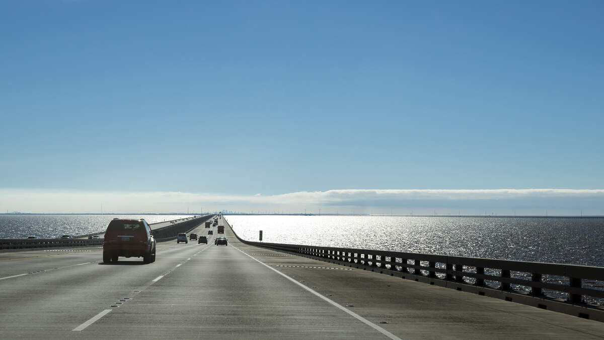 State police say the car was involved in a crash with two other vehicles on the Twin Span and went over the guard rail into the lake.