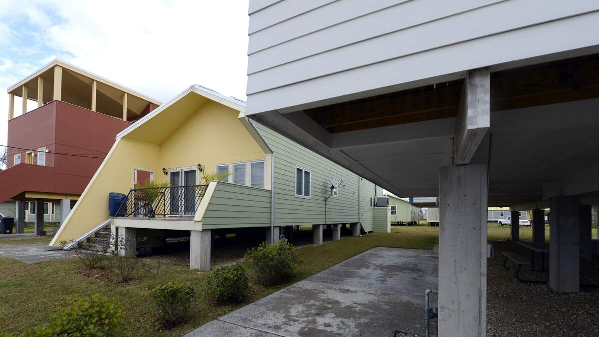 One of the modular houses built by the Brad Pitt's Make It Right Foundation is seen in the Lower Ninth Ward of New Orleans on February 5, 2013. (Photo: Timothy A. Clark/AFP/Getty Images)