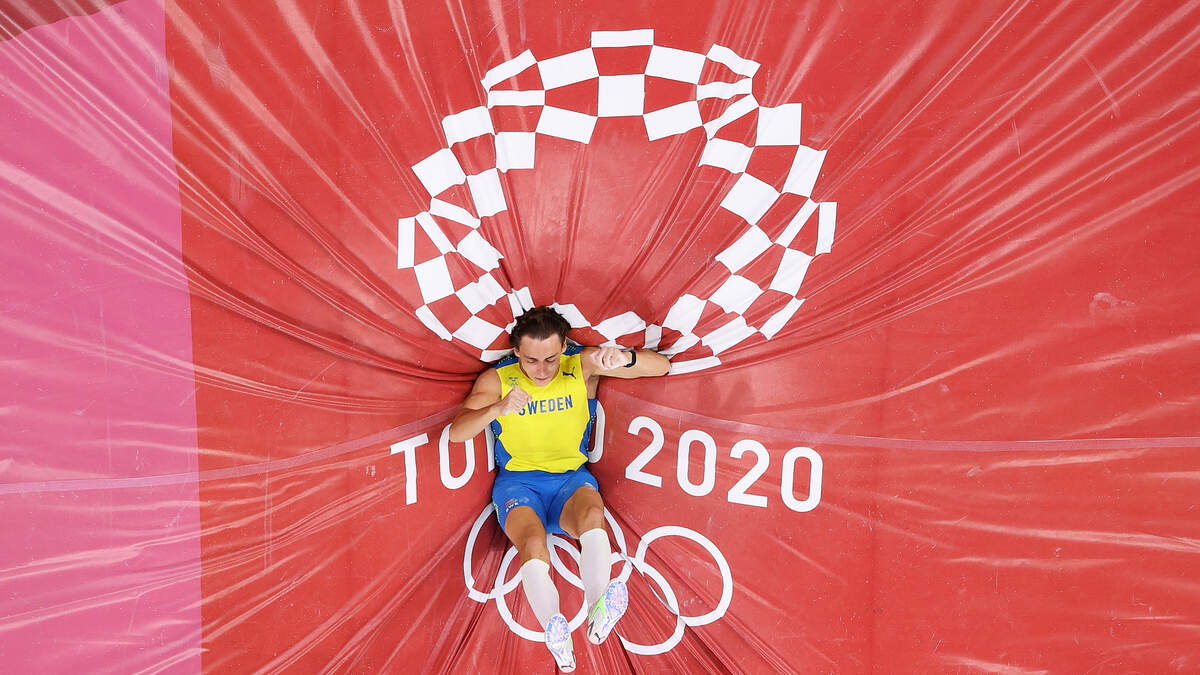 TOKYO, JAPAN - AUGUST 03: Armand Duplantis of Team Sweden competes in the Men's Pole Vault Final on day eleven of the Tokyo 2020 Olympic Games at Olympic Stadium on August 03, 2021 in Tokyo, Japan. (Photo by Richard Heathcote/Getty Images)