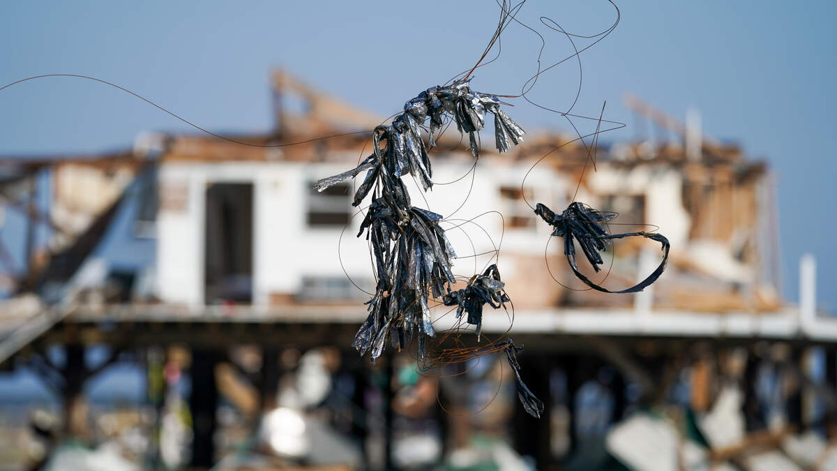 GRAND ISLE, LA - SEPTEMBER 4: Storm debris hangs from a utility wire after Hurricane Ida on September 4, 2021 in Grand Isle, Louisiana. Ida made landfall as a Category 4 hurricane six days before in Louisiana and brought flooding, wind damage and power outages along the Gulf Coast. (Photo by Sean Rayford/Getty Images)Photo: Getty Images