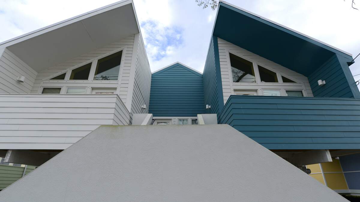 One of the modular houses built by the Brad Pitt's Make It Right Foundation is seen in the Lower Ninth Ward of New Orleans on February 5, 2013. (AFP Photo/Timothy A. Clary via Getty Images)Foto: Getty Images