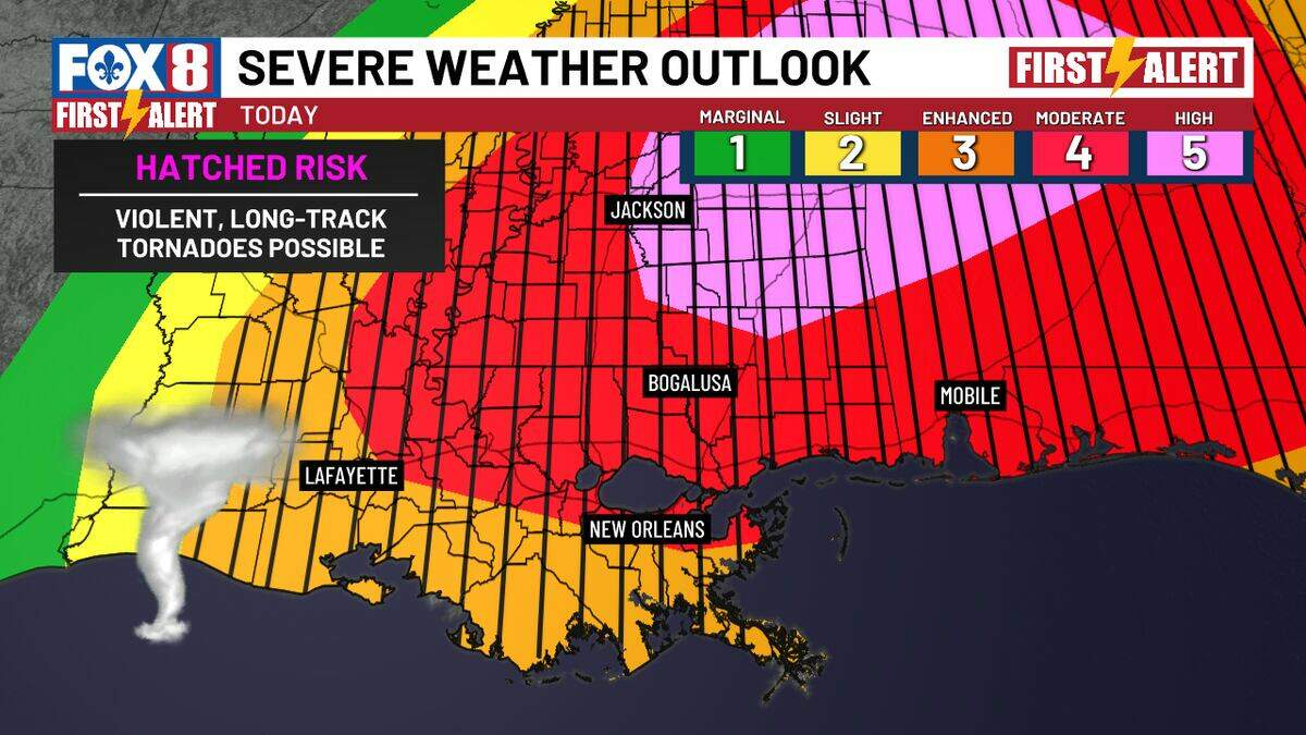 "Gusty winds and high humidity are streaming out of the Gulf this morning. Expect the first half of today to be the quiet portion with the active weather beginning around noon," he wrote on FOX 8's website. "Through the afternoon into this evening residents are urged to monitor the weather closely. Storms will form rapidly and possibly go severe quickly after the lunch hour. Any storm today will be capable of producing tornadoes, damaging winds and damaging hail."